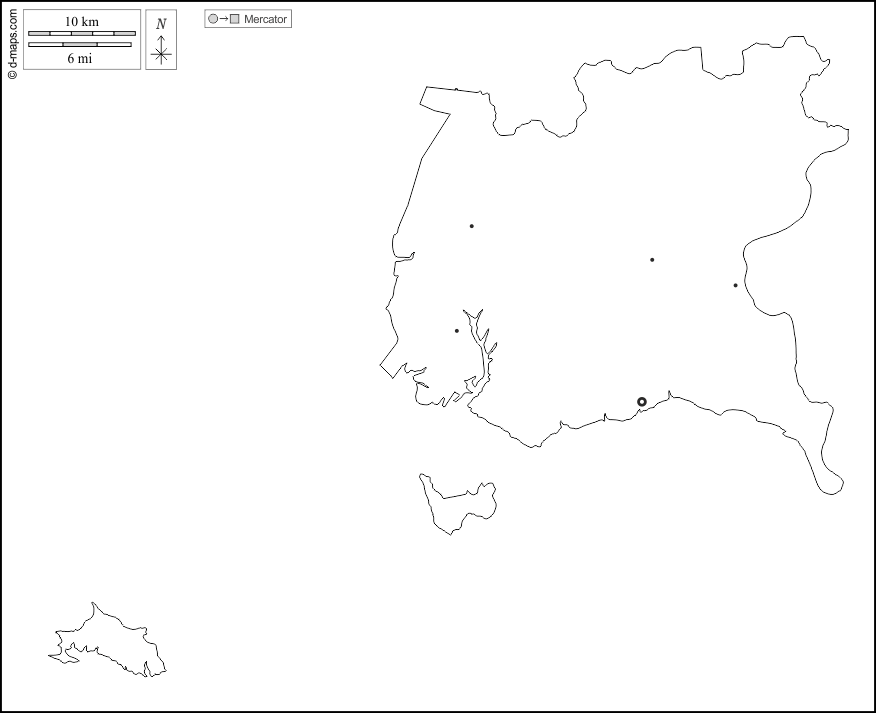 d-maps > एशिया > उत्तर कोरिया > नम्पो > बाह्यरेखा, मुख्य शहरों, सफेद