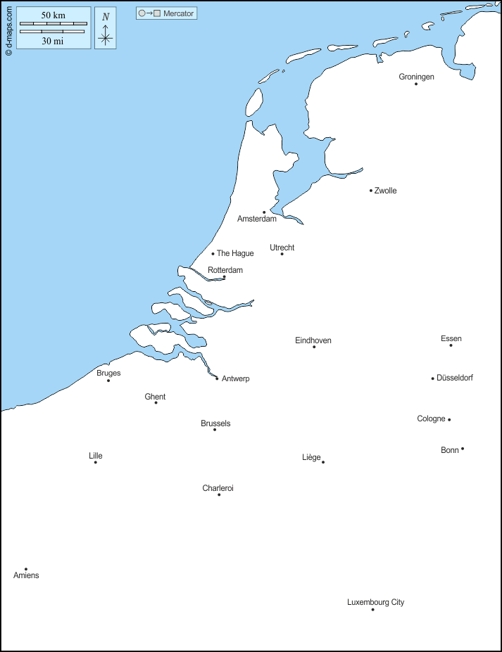 d-maps > यूरोप > बेनेलक्स > तटों, मुख्य शहरों, नाम
