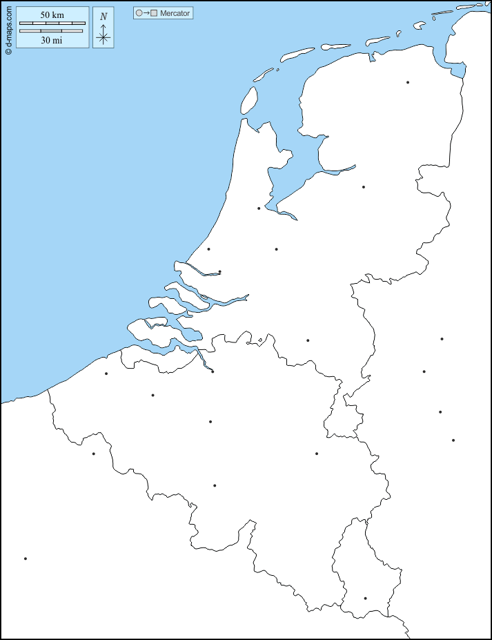 d-maps > यूरोप > बेनेलक्स > राज्यों, मुख्य शहरों