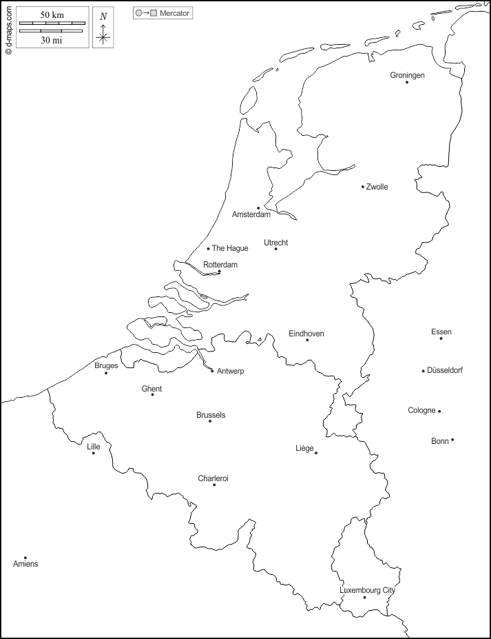 d-maps > यूरोप > बेनेलक्स > राज्यों, मुख्य शहरों, नाम, सफेद