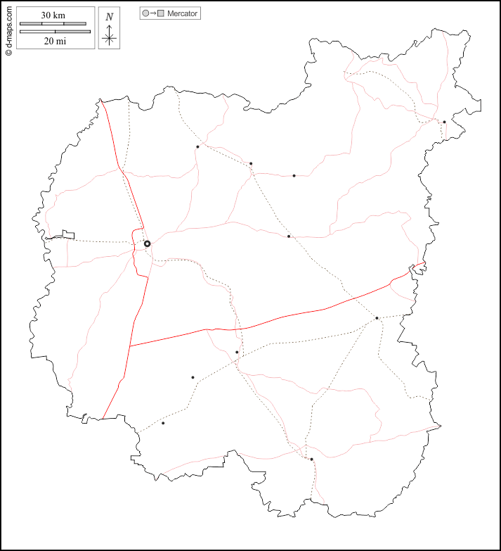 d-maps > यूरोप > यूक्रेन > चेर्निहाइव > बाह्यरेखा, मुख्य शहरों, सड़कों, सफेद