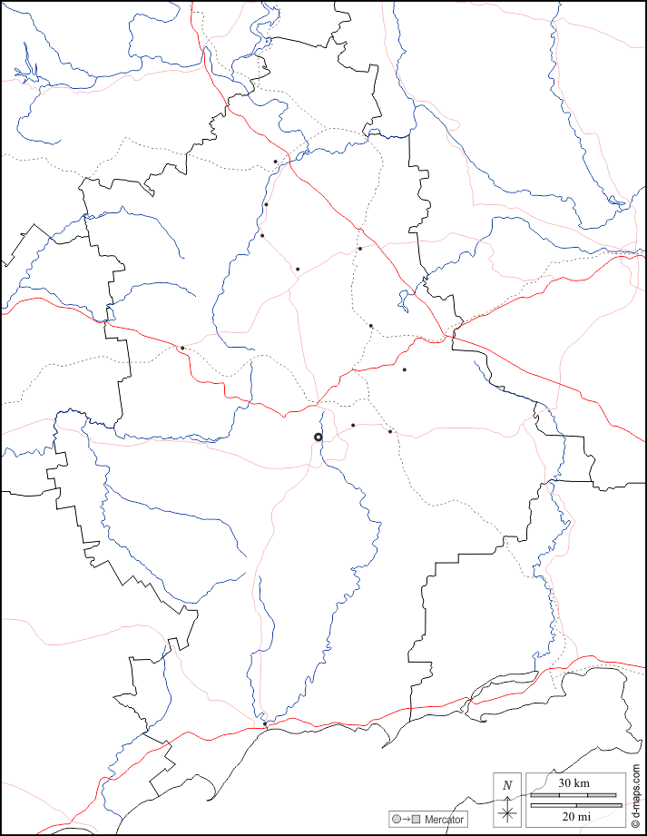 d-maps > यूरोप > यूक्रेन > दोनेत्स्क > सीमाओं, जल-सर्वेक्षण, मुख्य शहरों, सड़कों, सफेद