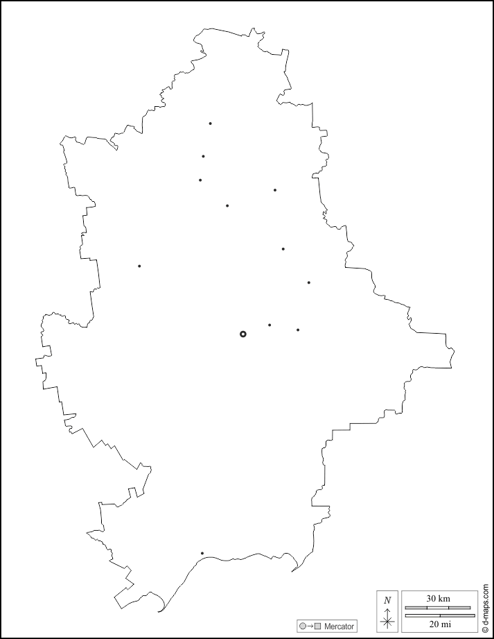 d-maps > यूरोप > यूक्रेन > दोनेत्स्क > बाह्यरेखा, मुख्य शहरों, सफेद