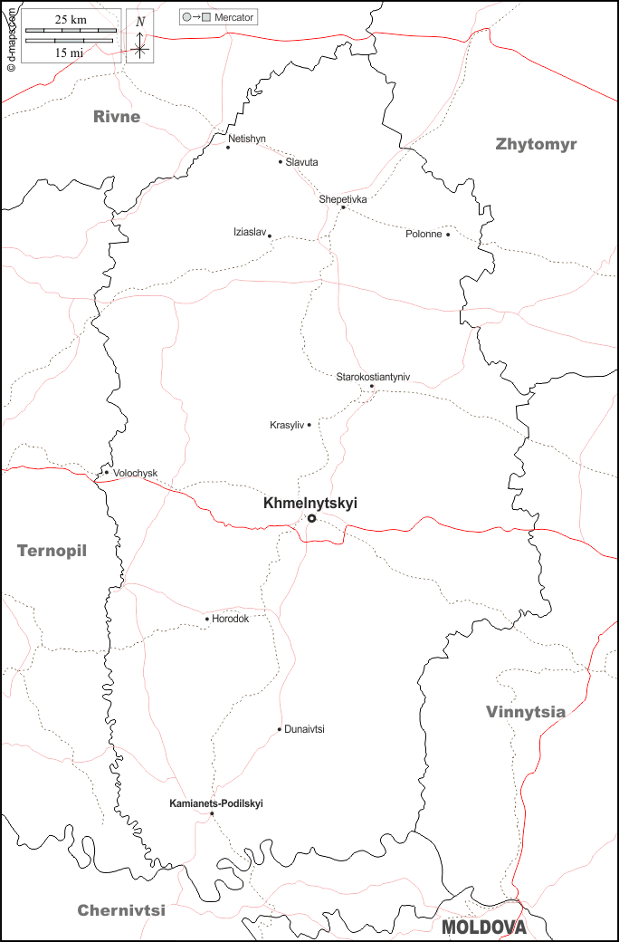 यूरोप > यूक्रेन > ख्मेल्नाइत्स्की > सीमाओं, मुख्य शहरों, सड़कों, नाम, सफेद