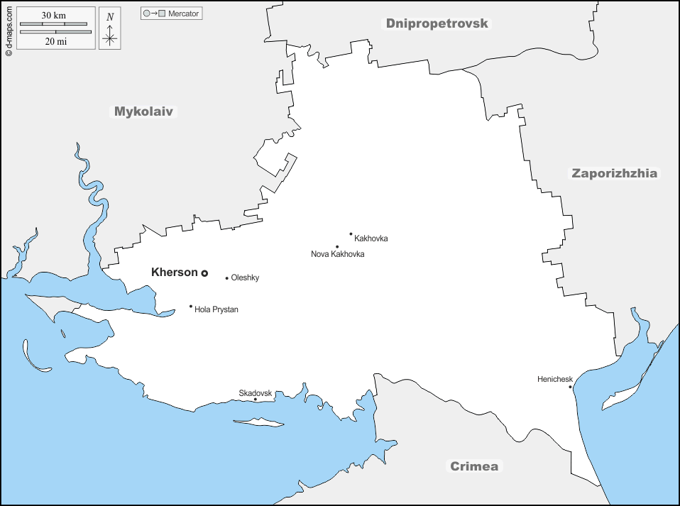 d-maps > यूरोप > यूक्रेन > खेरसॉन > सीमाओं, मुख्य शहरों, नाम