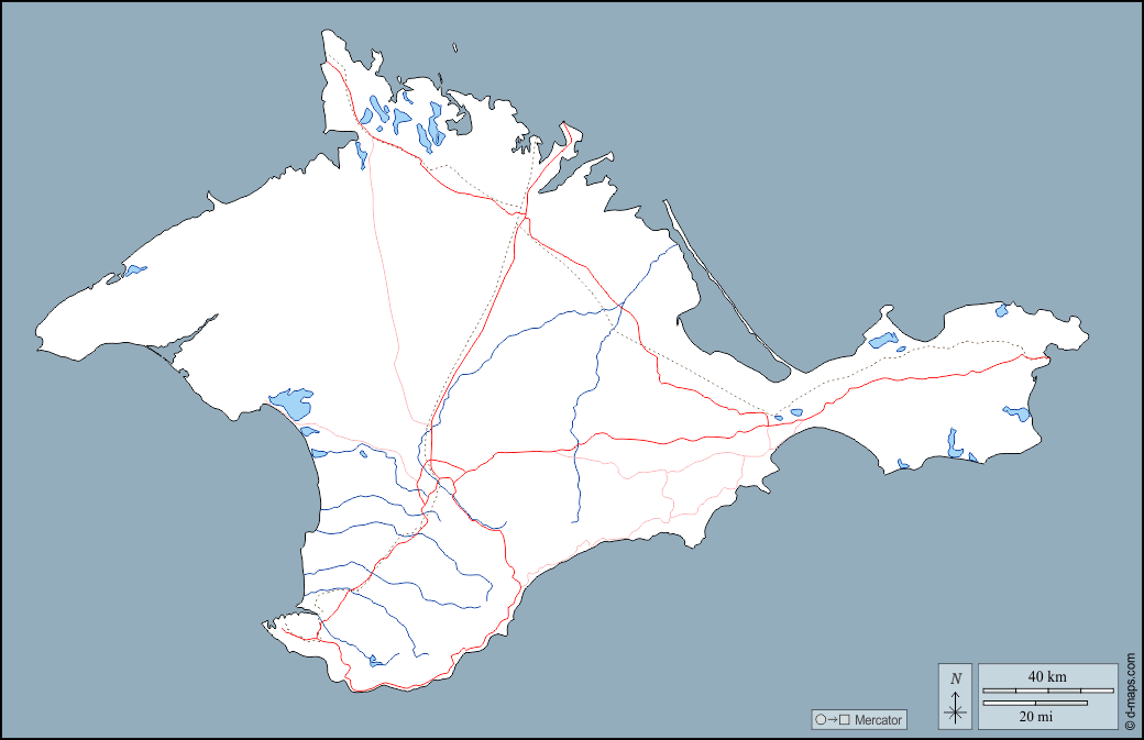 d-maps > यूरोप > यूक्रेन > क्रीमिया > बाह्यरेखा, जल-सर्वेक्षण, सड़कों