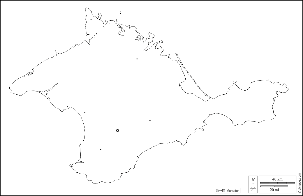 d-maps > यूरोप > यूक्रेन > क्रीमिया > बाह्यरेखा, मुख्य शहरों, सफेद