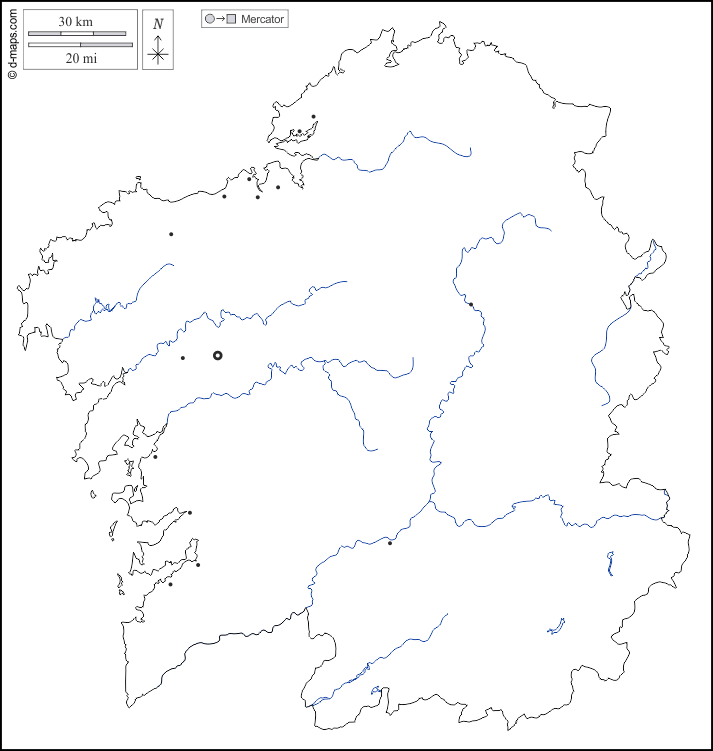 d-maps > यूरोप > स्पेन > गलिशिया > बाह्यरेखा, जल-सर्वेक्षण, मुख्य शहरों, सफेद