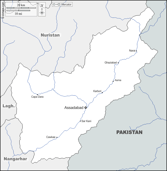 d-maps > एशिया > अफ़गानिस्तान > कुनर प्रान्त > सीमाओं, जल-सर्वेक्षण, मुख्य शहरों, नाम