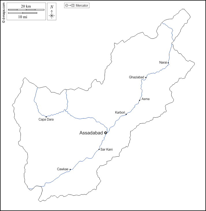 d-maps > एशिया > अफ़गानिस्तान > कुनर प्रान्त > बाह्यरेखा, जल-सर्वेक्षण, मुख्य शहरों, नाम, सफेद