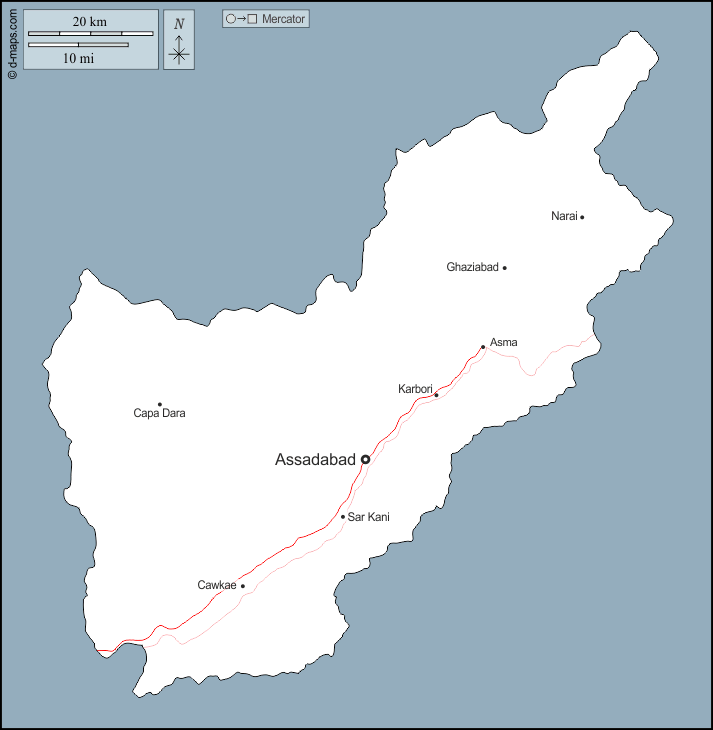 d-maps > एशिया > अफ़गानिस्तान > कुनर प्रान्त > बाह्यरेखा, मुख्य शहरों, सड़कों, नाम