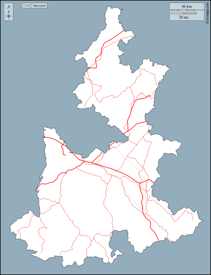 d-maps > महाअमेरिका > मेक्सिको > पुएब्ला > बाह्यरेखा, सड़कों