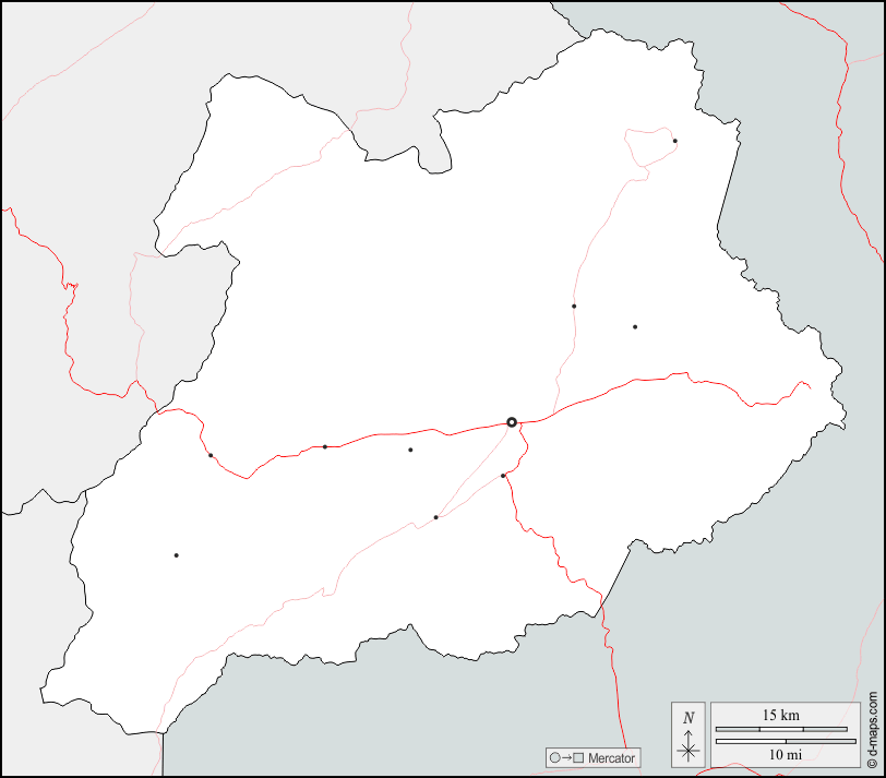 d-maps > एशिया > अफ़गानिस्तान > ख़ोस्त प्रान्त > सीमाओं, मुख्य शहरों, सड़कों