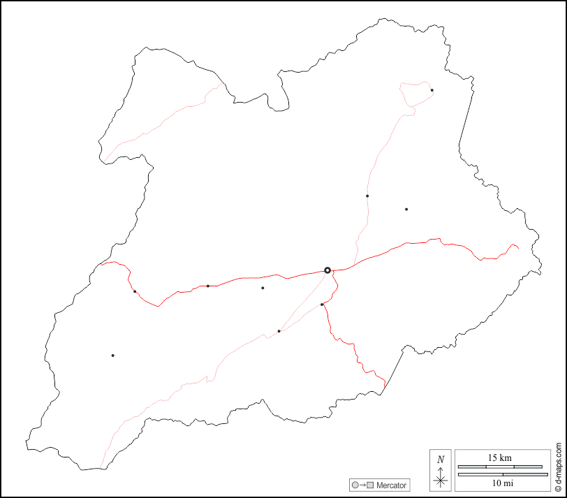 d-maps > एशिया > अफ़गानिस्तान > ख़ोस्त प्रान्त > बाह्यरेखा, मुख्य शहरों, सड़कों, सफेद