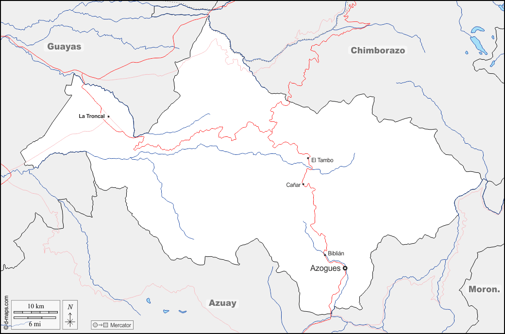 d-maps > महाअमेरिका > इक्वेडोर > कैनार प्रांत > सीमाओं, जल-सर्वेक्षण, मुख्य शहरों, सड़कों, नाम