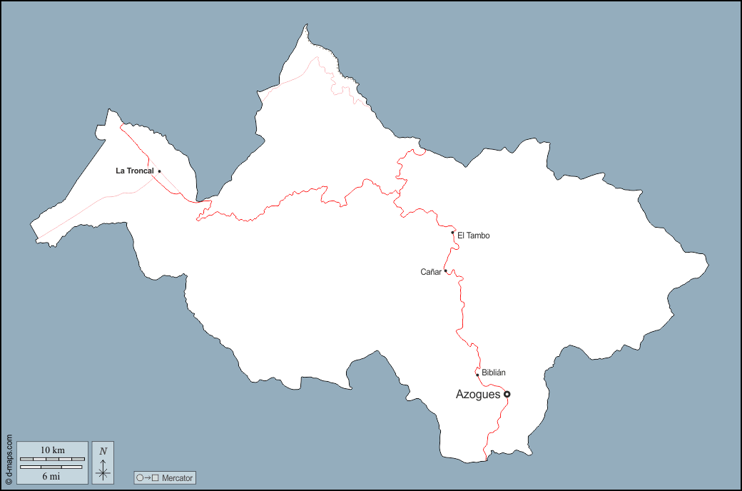 d-maps > महाअमेरिका > इक्वेडोर > कैनार प्रांत > बाह्यरेखा, मुख्य शहरों, सड़कों, नाम