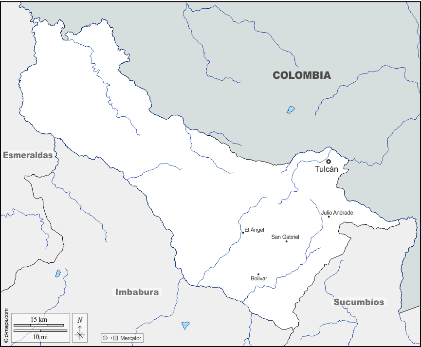 d-maps > महाअमेरिका > इक्वेडोर > कार्ची प्रांत > सीमाओं, जल-सर्वेक्षण, मुख्य शहरों, नाम