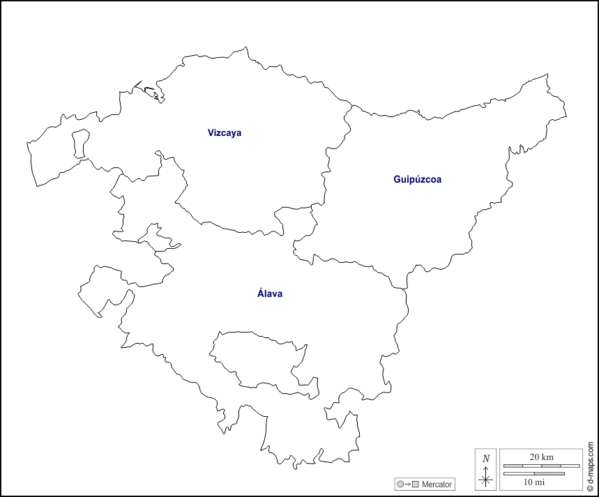 d-maps > यूरोप > स्पेन > बास्क प्रदेश > बाह्यरेखा, प्रांतों, नाम, सफेद