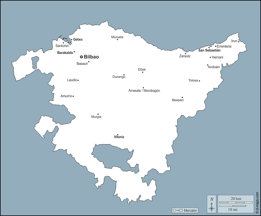 d-maps > यूरोप > स्पेन > बास्क प्रदेश > बाह्यरेखा, मुख्य शहरों, नाम