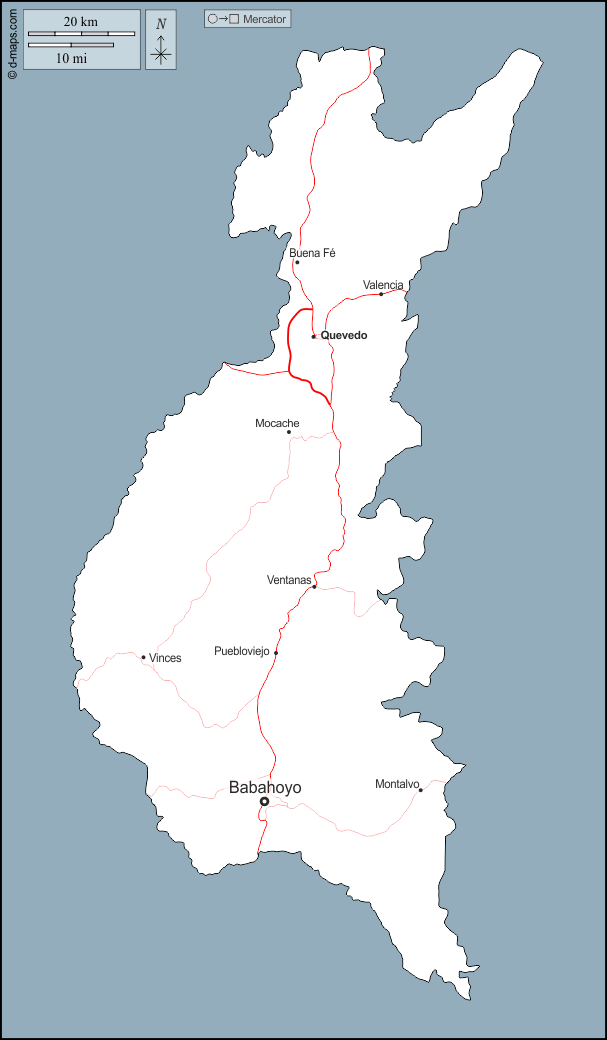 d-maps > महाअमेरिका > इक्वेडोर > लॉस रियोस प्रांत > बाह्यरेखा, मुख्य शहरों, सड़कों, नाम