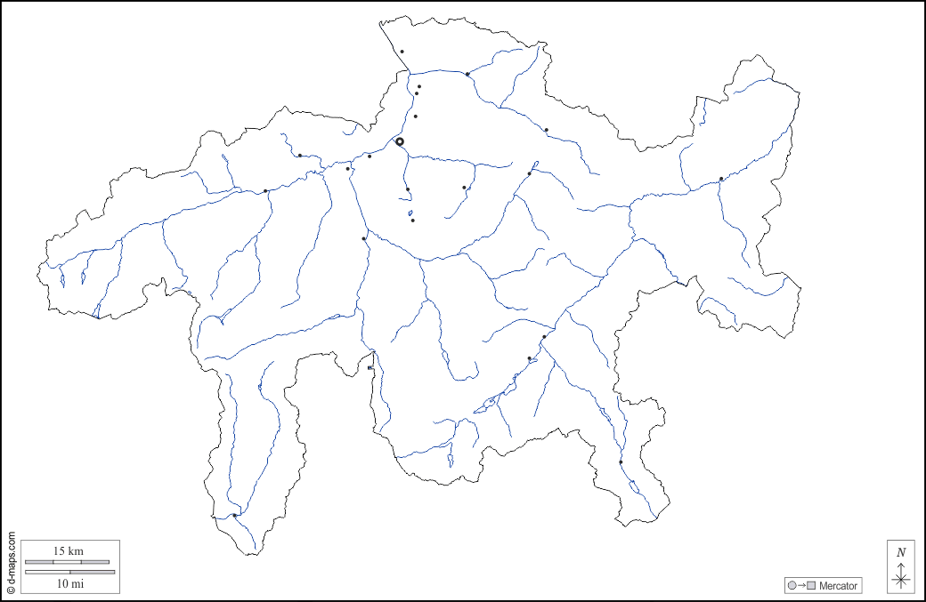 d-maps > यूरोप > स्विट्ज़रलैंड > ग्राउबुन्डन कैन्टन > बाह्यरेखा, जल-सर्वेक्षण, मुख्य शहरों, सफेद