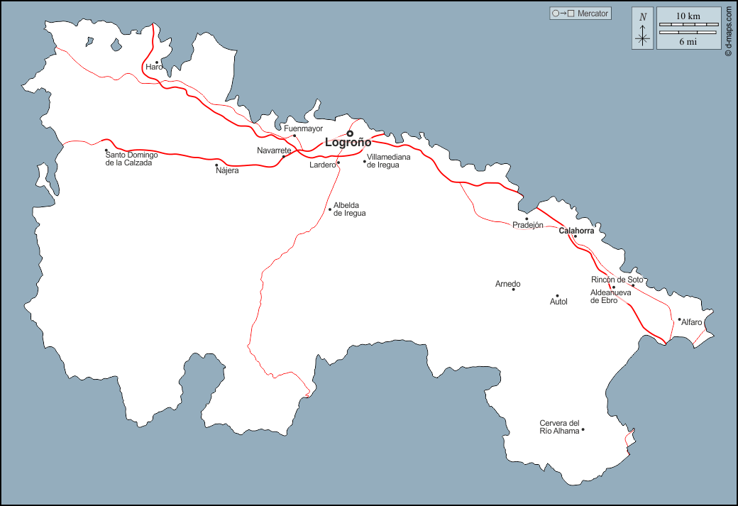 d-maps > यूरोप > स्पेन > ला रियोजा > बाह्यरेखा, मुख्य शहरों, सड़कों, नाम
