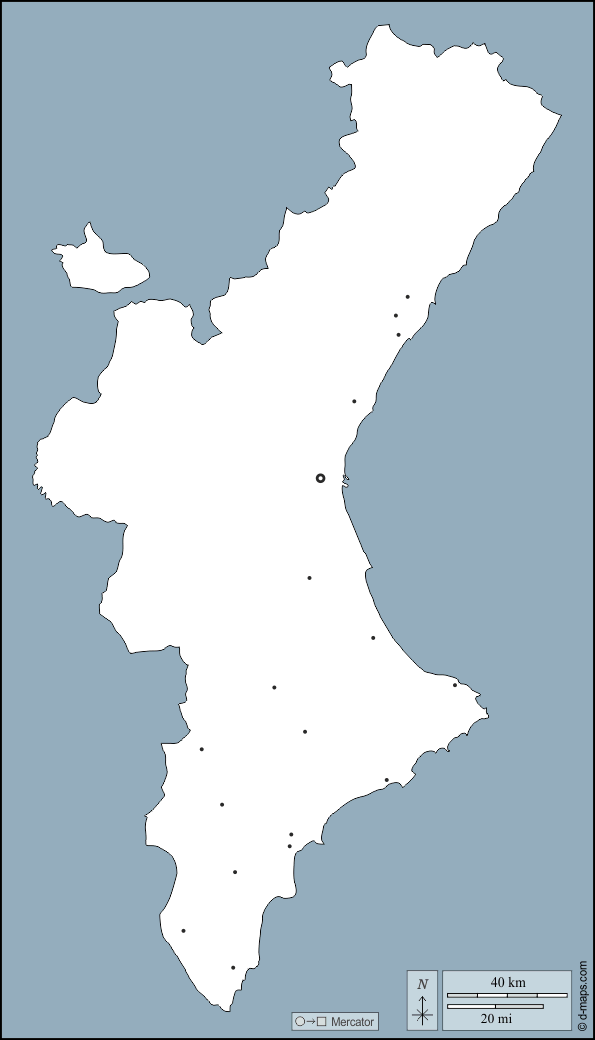 d-maps > यूरोप > स्पेन > वैलेंसियाई समुदाय > बाह्यरेखा, मुख्य शहरों