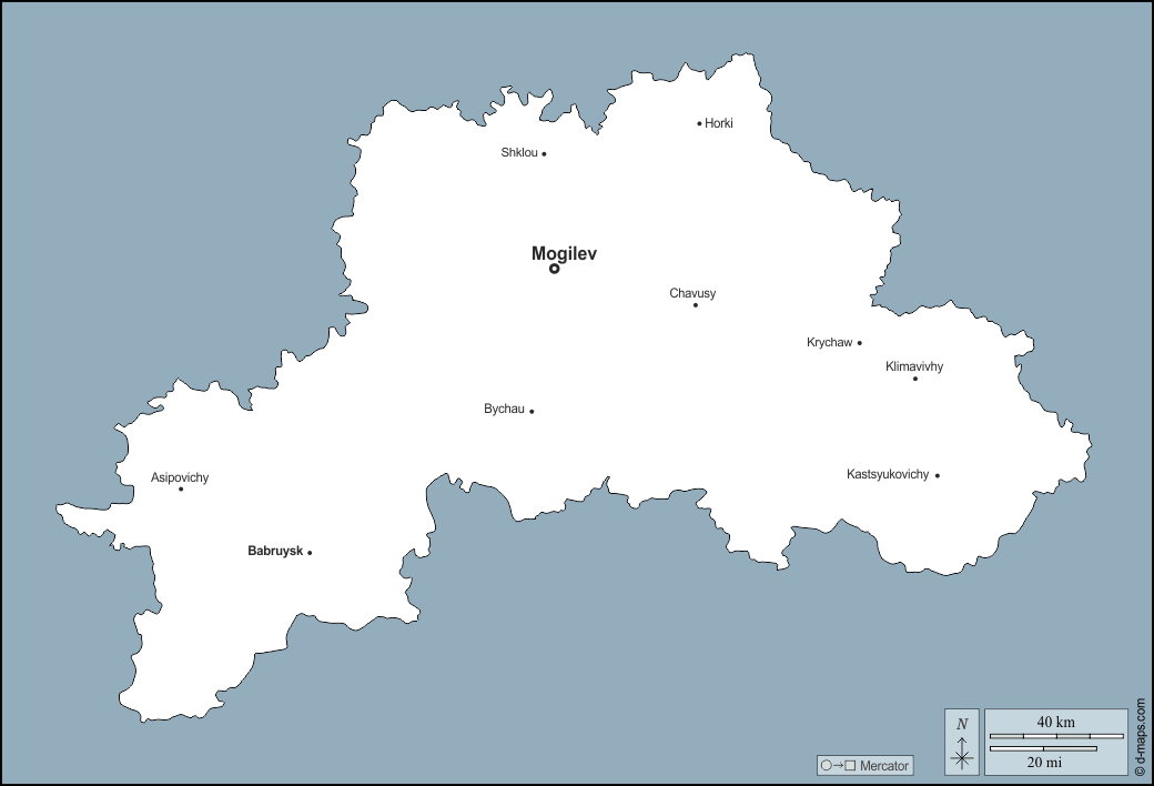 d-maps > यूरोप > बेलारूस > मोगिलेव > बाह्यरेखा, मुख्य शहरों, नाम