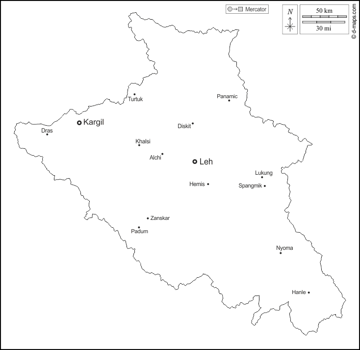 d-maps > एशिया > भारत > लद्दाख़ > बाह्यरेखा, मुख्य शहरों, नाम, सफेद