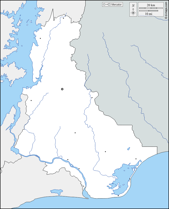 d-maps > अफ्रीका > घाना > वोल्टा > सीमाओं, जल-सर्वेक्षण, मुख्य शहरों
