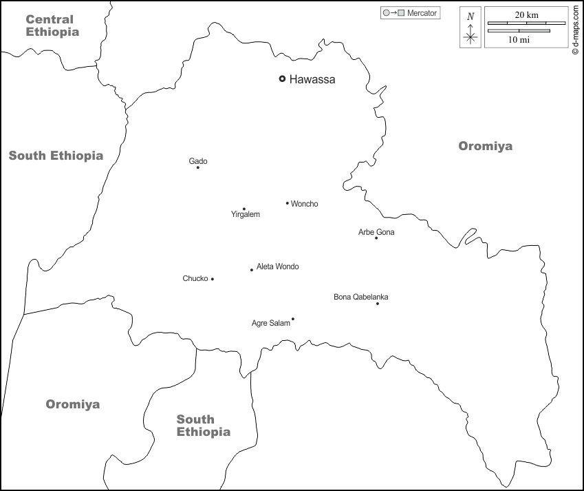 d-maps > अफ्रीका > इथियोपिया > सिदामा > सीमाओं, मुख्य शहरों, नाम, सफेद