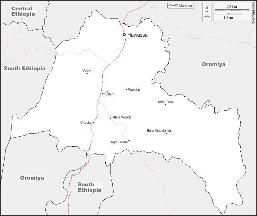 d-maps > अफ्रीका > इथियोपिया > सिदामा > सीमाओं, मुख्य शहरों, सड़कों, नाम