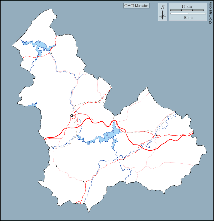 d-maps > अफ्रीका > ट्यूनीशिया > बीजा > बाह्यरेखा, जल-सर्वेक्षण, मुख्य शहरों, सड़कों
