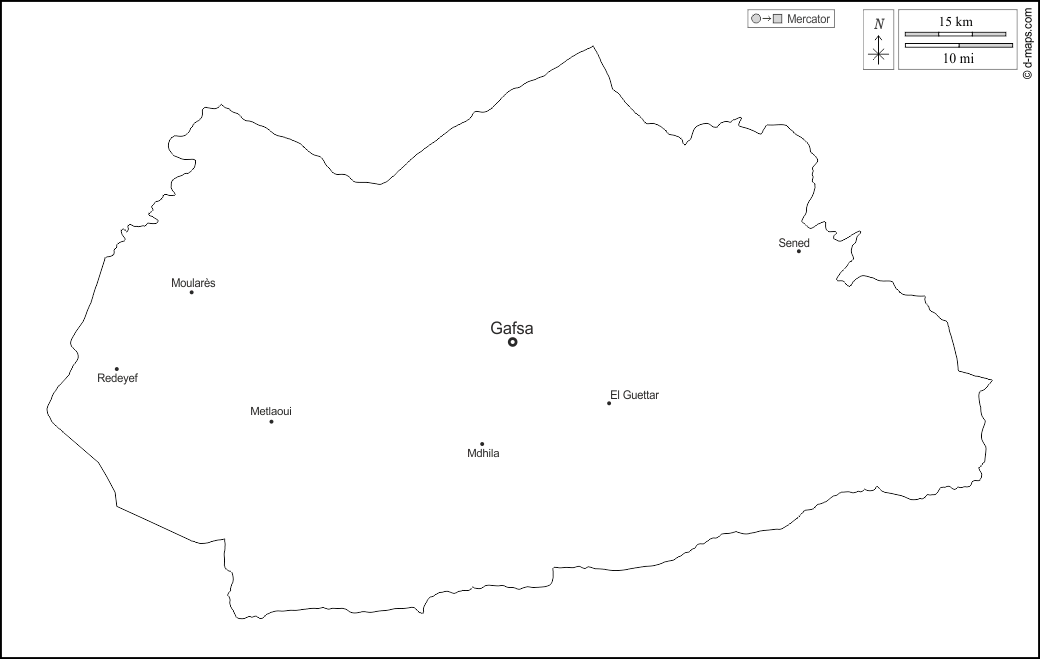 d-maps > अफ्रीका > ट्यूनीशिया > गाफ्सा > बाह्यरेखा, मुख्य शहरों, नाम, सफेद