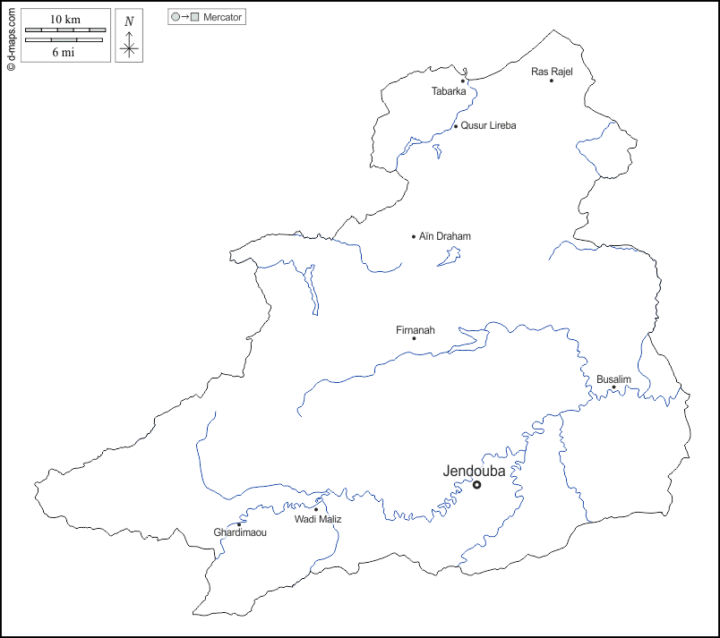 d-maps > अफ्रीका > ट्यूनीशिया > जेन्दूबा > बाह्यरेखा, जल-सर्वेक्षण, मुख्य शहरों, नाम, सफेद