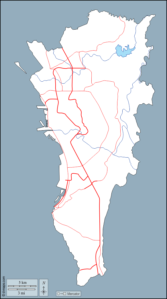 d-maps > एशिया > फिलीपींस > मेट्रो मनीला > बाह्यरेखा, जल-सर्वेक्षण, सड़कों