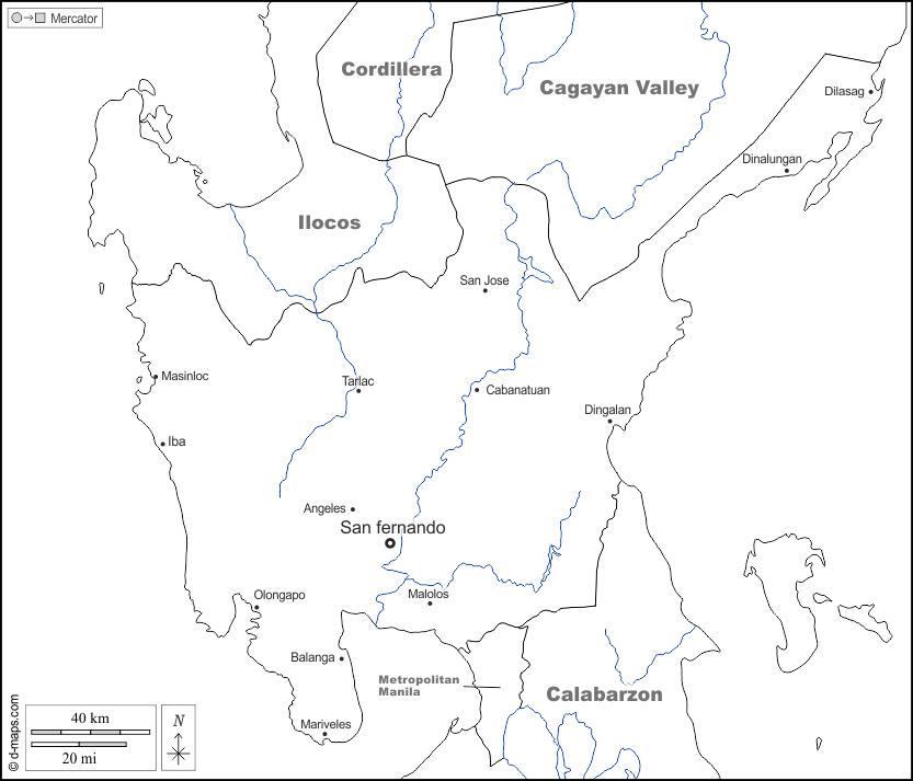 d-maps > एशिया > फिलीपींस > मध्य लूज़ोन > सीमाओं, जल-सर्वेक्षण, मुख्य शहरों, नाम, सफेद