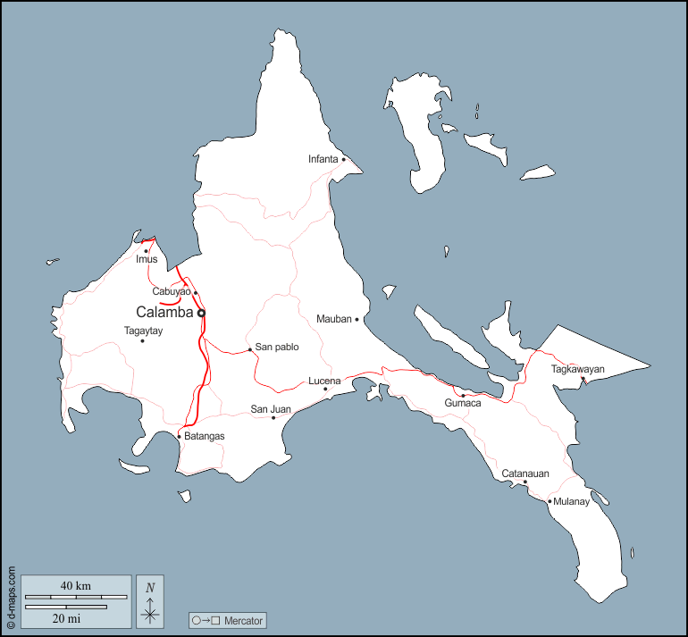 d-maps > एशिया > फिलीपींस > कालाबारज़ोन > बाह्यरेखा, मुख्य शहरों, सड़कों, नाम