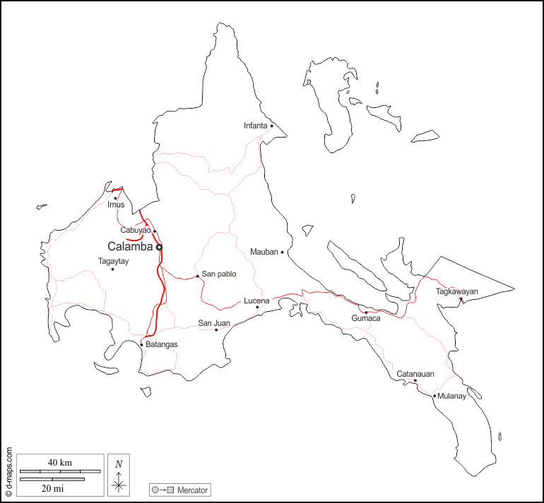 d-maps > एशिया > फिलीपींस > कालाबारज़ोन > बाह्यरेखा, मुख्य शहरों, सड़कों, नाम, सफेद