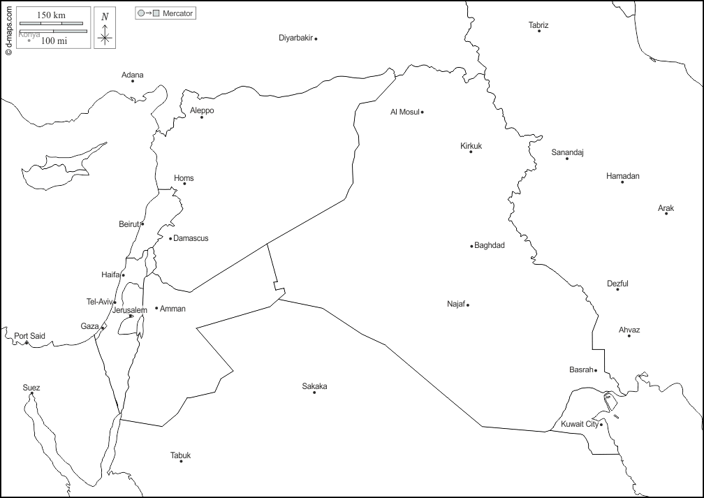 एशिया > मध्य पूर्व > राज्यों, मुख्य शहरों, नाम, सफेद