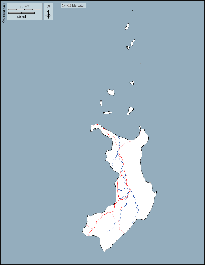 d-maps > एशिया > फिलीपींस > कागायान प्रान्त > बाह्यरेखा, जल-सर्वेक्षण, सड़कों