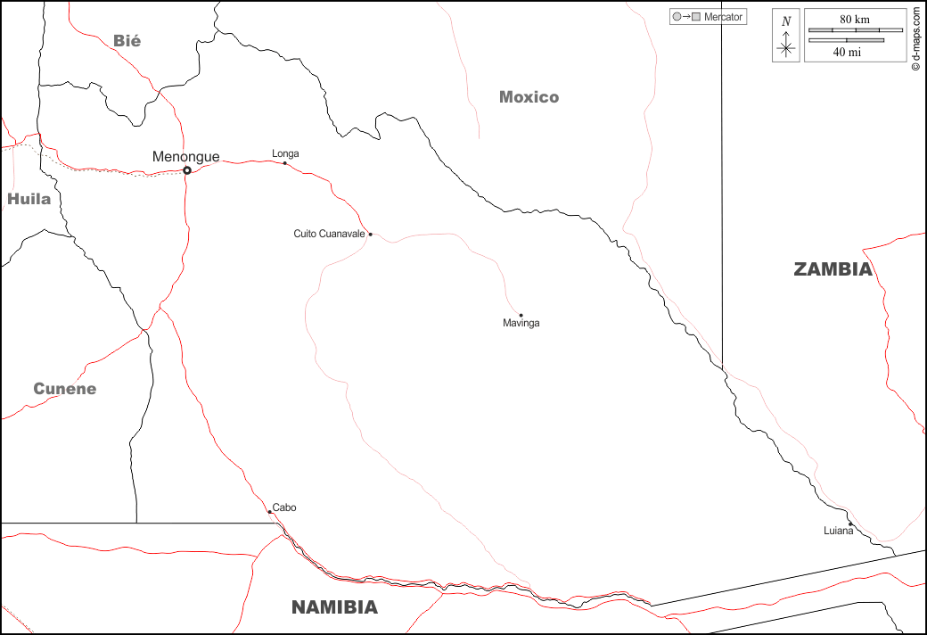d-maps > अफ्रीका > अंगोला > कूय्न्डो कुबंगो प्रांत > सीमाओं, मुख्य शहरों, सड़कों, नाम, सफेद