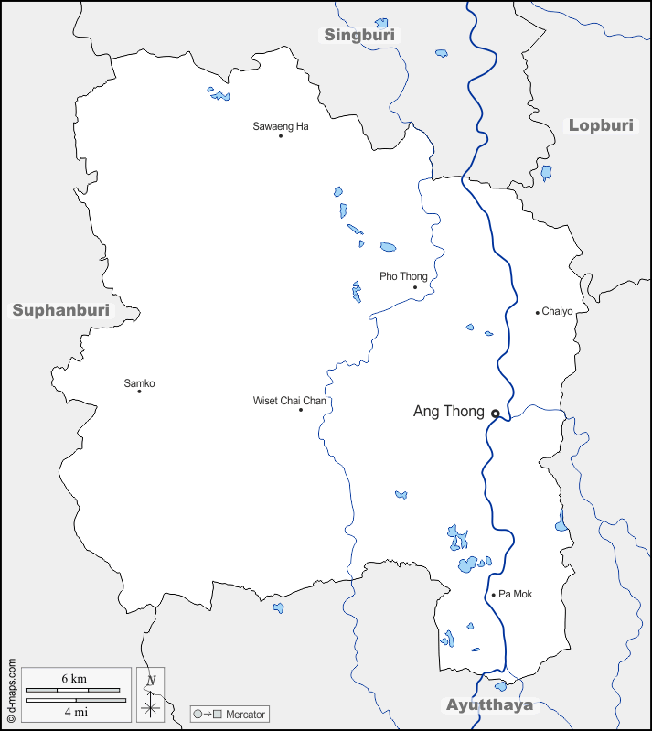d-maps > एशिया > थाईलैंड > आंग थोंग प्रान्त > सीमाओं, जल-सर्वेक्षण, मुख्य शहरों, नाम