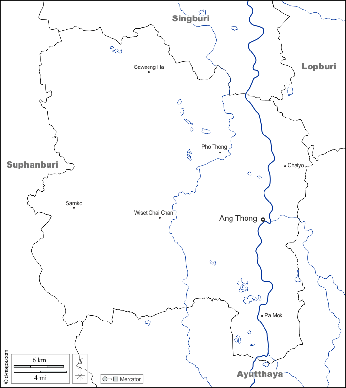 d-maps > एशिया > थाईलैंड > आंग थोंग प्रान्त > सीमाओं, जल-सर्वेक्षण, मुख्य शहरों, नाम, सफेद