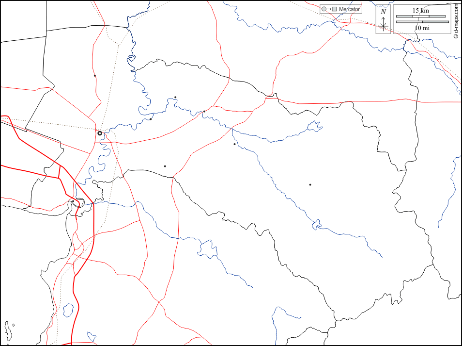d-maps > एशिया > थाईलैंड > चाचअंग्साओ प्रान्त > सीमाओं, जल-सर्वेक्षण, मुख्य शहरों, सड़कों, सफेद