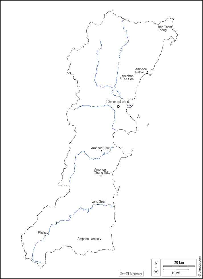 d-maps > एशिया > थाईलैंड > चुमफोन प्रान्त > बाह्यरेखा, जल-सर्वेक्षण, मुख्य शहरों, नाम, सफेद