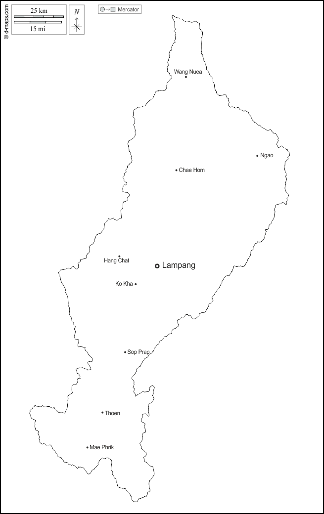 d-maps > एशिया > थाईलैंड > लम्पांग प्रान्त > बाह्यरेखा, मुख्य शहरों, नाम, सफेद