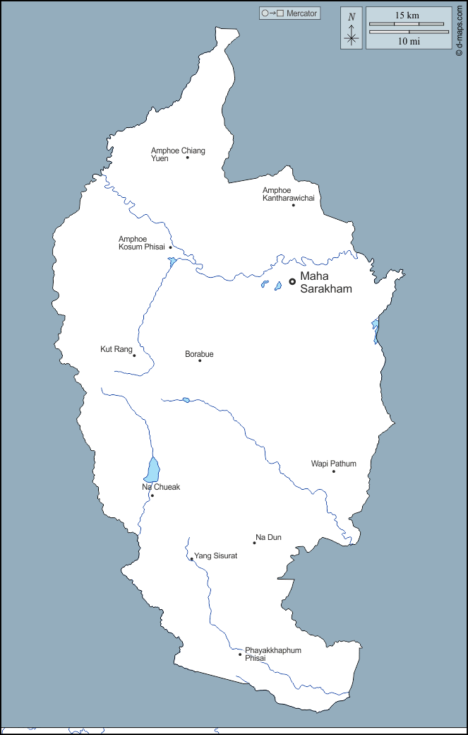 d-maps > एशिया > थाईलैंड > महा साराखाम प्रान्त > बाह्यरेखा, जल-सर्वेक्षण, मुख्य शहरों, नाम