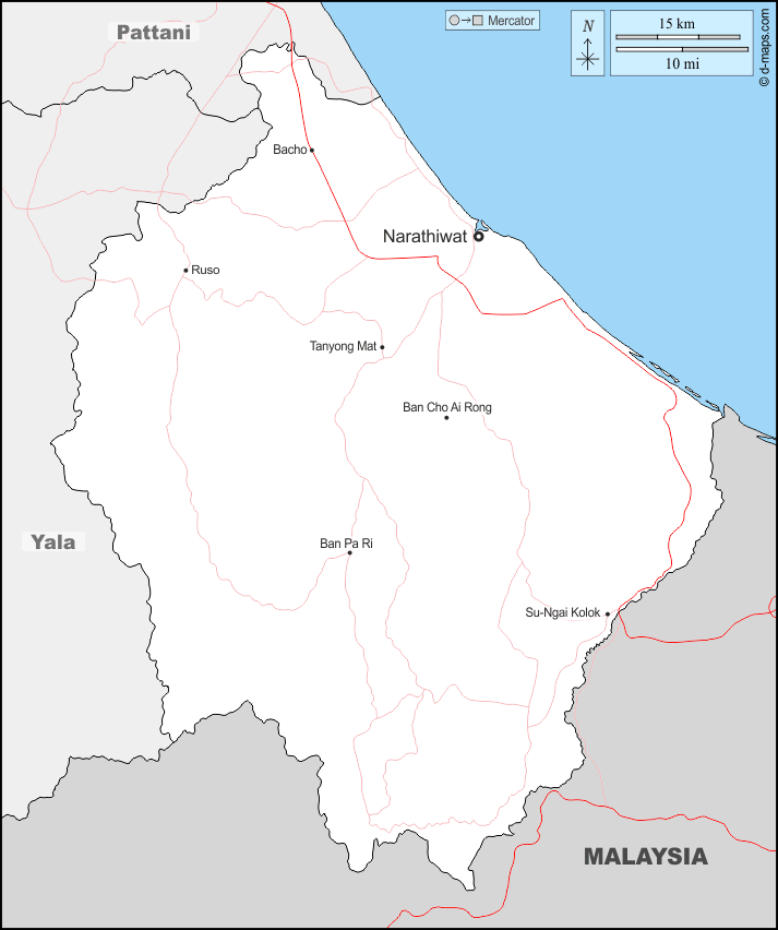 d-maps > एशिया > थाईलैंड > नराथिवात प्रान्त > सीमाओं, मुख्य शहरों, सड़कों, नाम