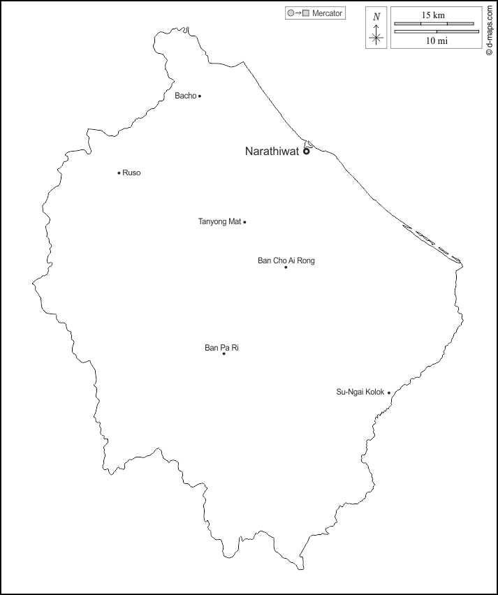 d-maps > एशिया > थाईलैंड > नराथिवात प्रान्त > बाह्यरेखा, मुख्य शहरों, नाम, सफेद
